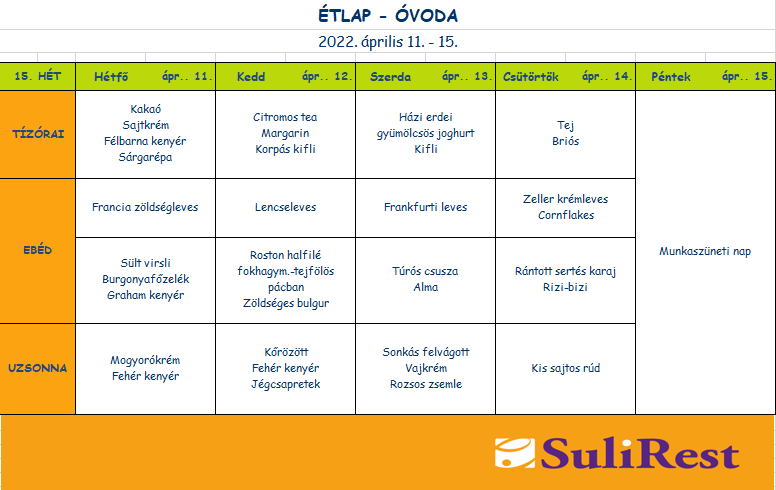 • Heti menü